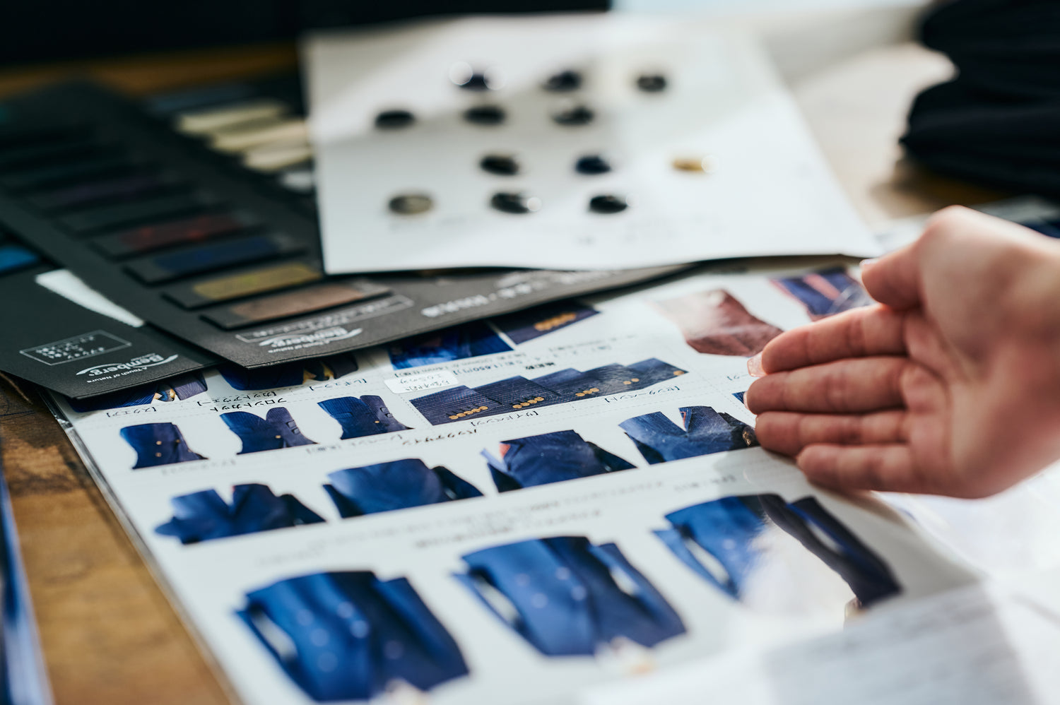 1,000種類以上の中から、色や柄はもちろん、最適な機能や着心地の生地をご提案。併せて、スーツのデザインやボタン、裏地などをお選びいただきます。